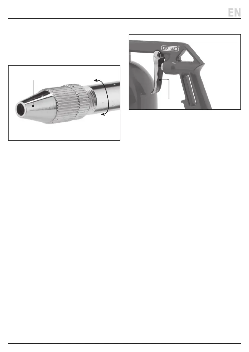 the nozzle locking nut (17) may need to be loosened