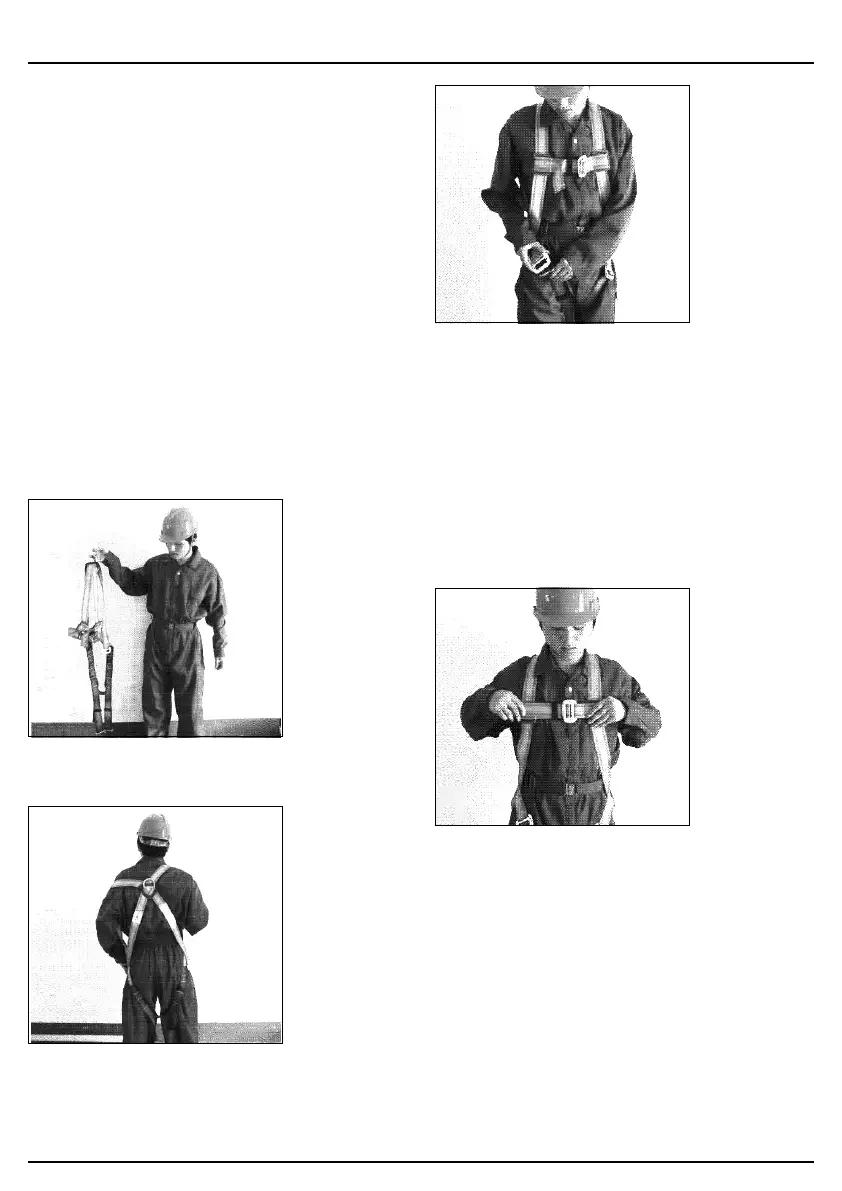 2. Hold the shoulder straps (2) and put the harness on