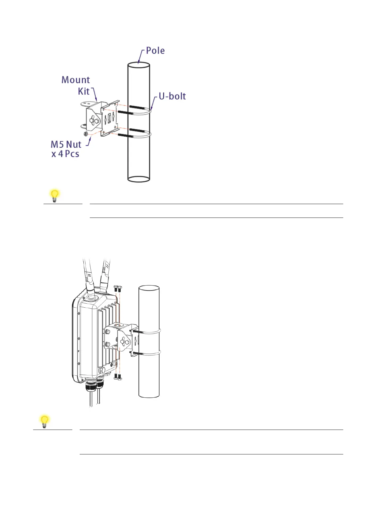 5. Fasten the mount kit on the pole with nut screws and with torque of 20 kgf-cm.