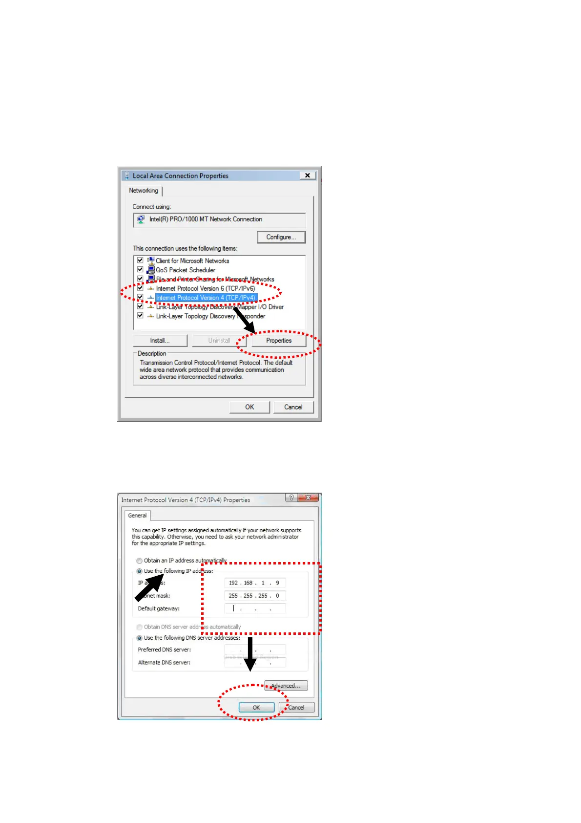 Select Use the following IP address, then input the following settings in respective field and click