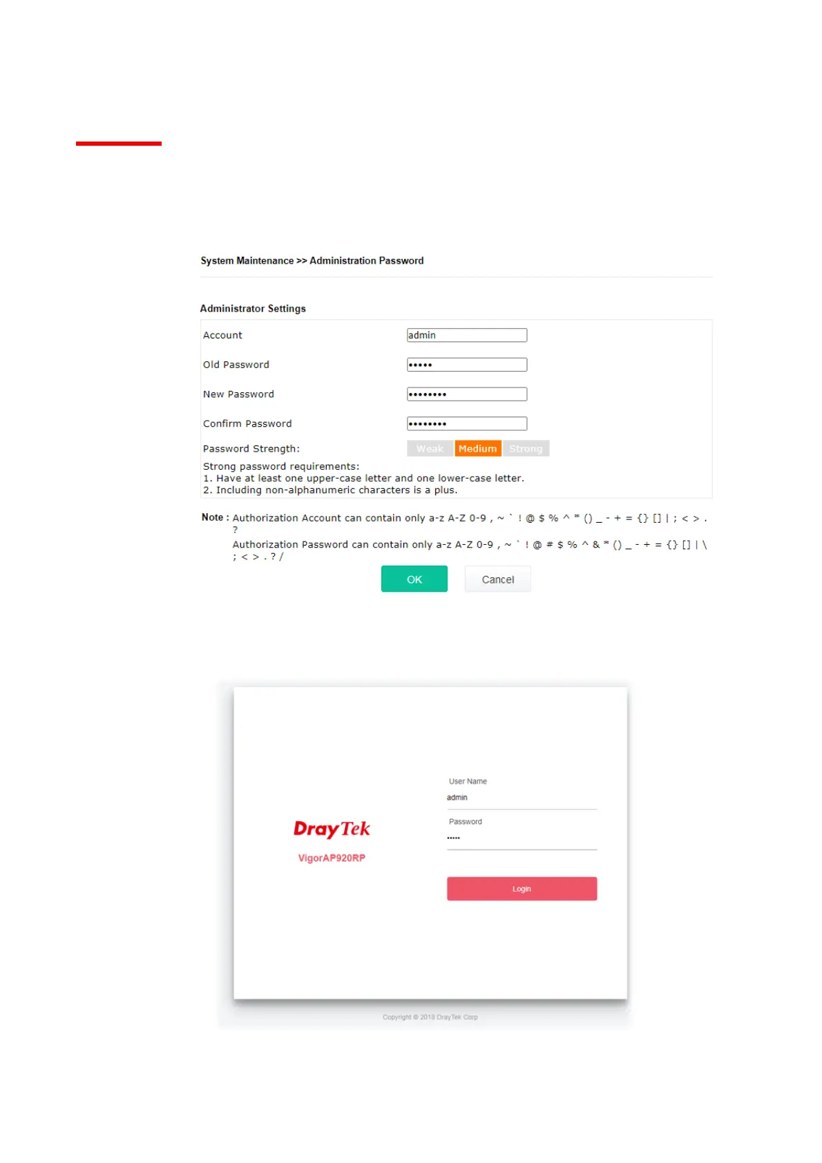 3. Enter the new login password on the field of Password. Then click OK to continue.