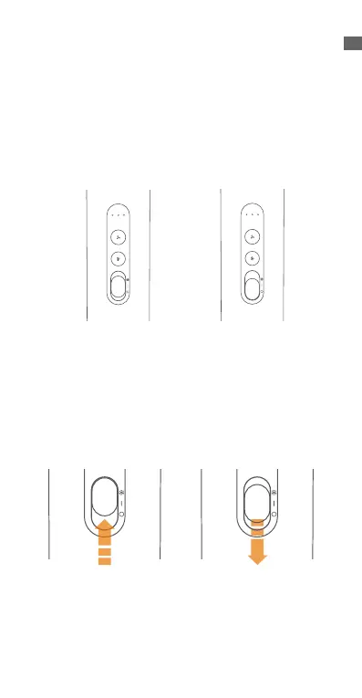 Duw de schakelknop omhoog/omlaag om de haarstyler