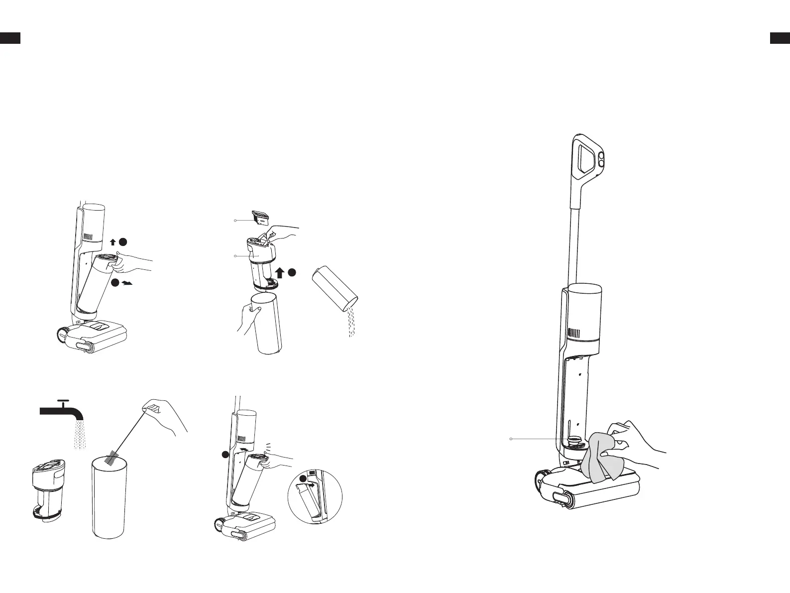 Nehmen Sie den Schmutzwasserbehälter heraus, wischen Sie den Schlauch und den