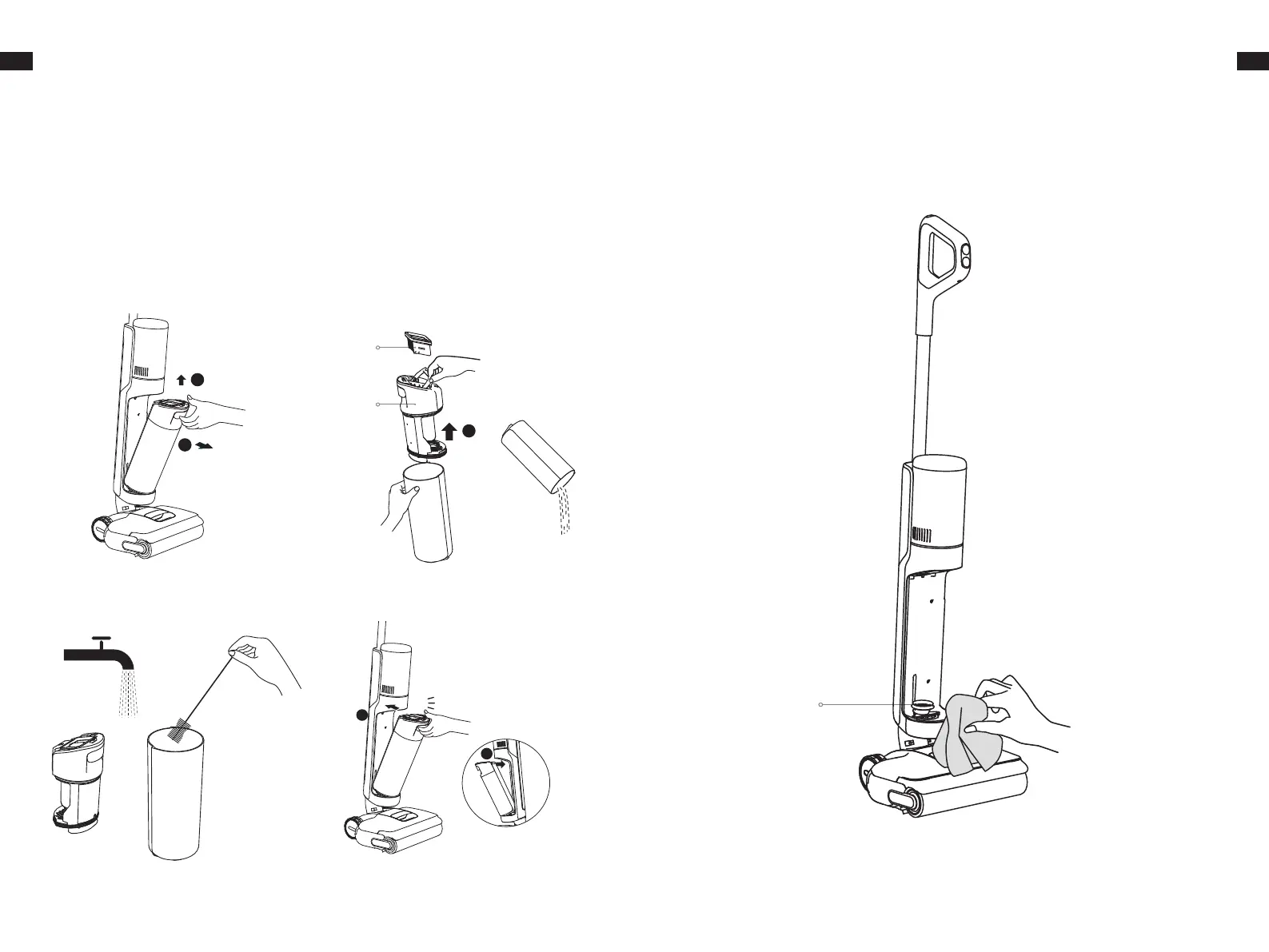 Verwijder de vuilwatertank en veeg de buis en de vuilsensor voorzichtig af met een natte