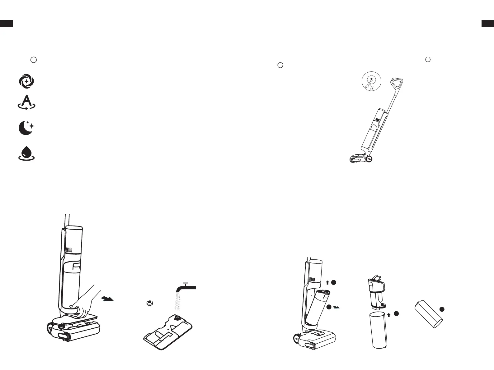 Gently step on the brush cover and recline the appliance backward. Press to start cleaning.