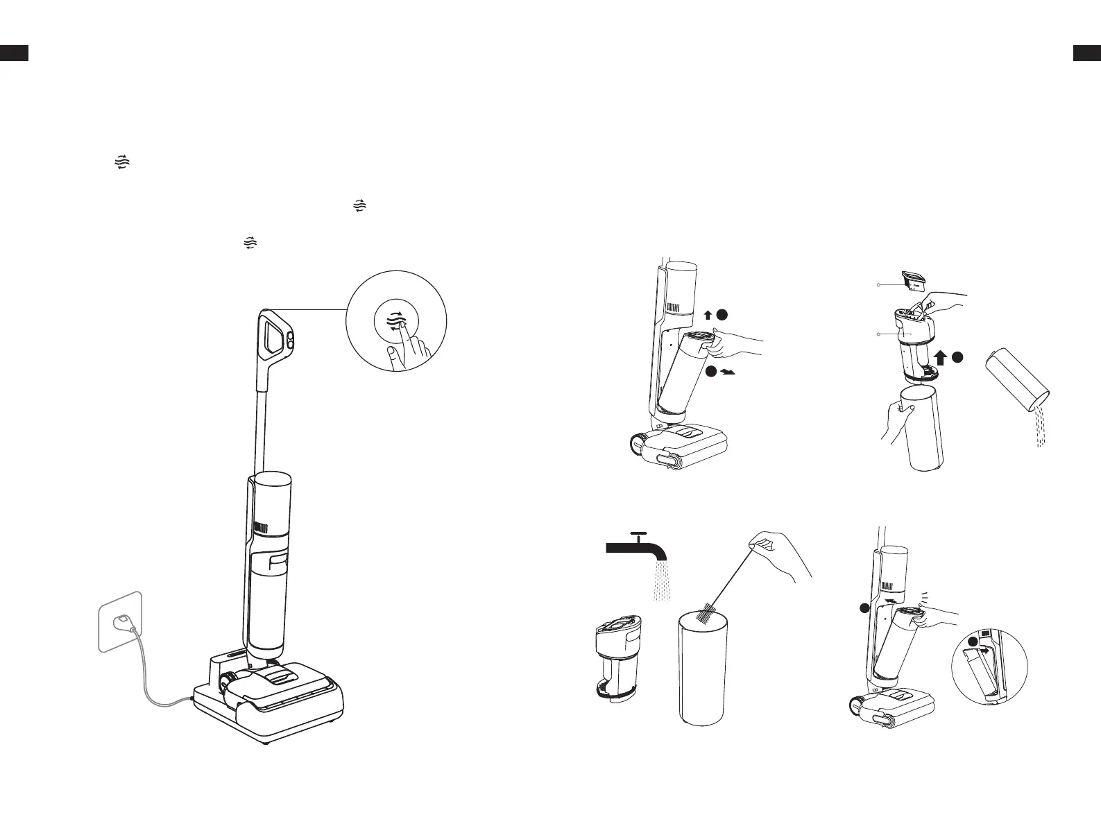 2. Briefly press on the top of the handle to start/stop self-cleaning. Switch the drying mode