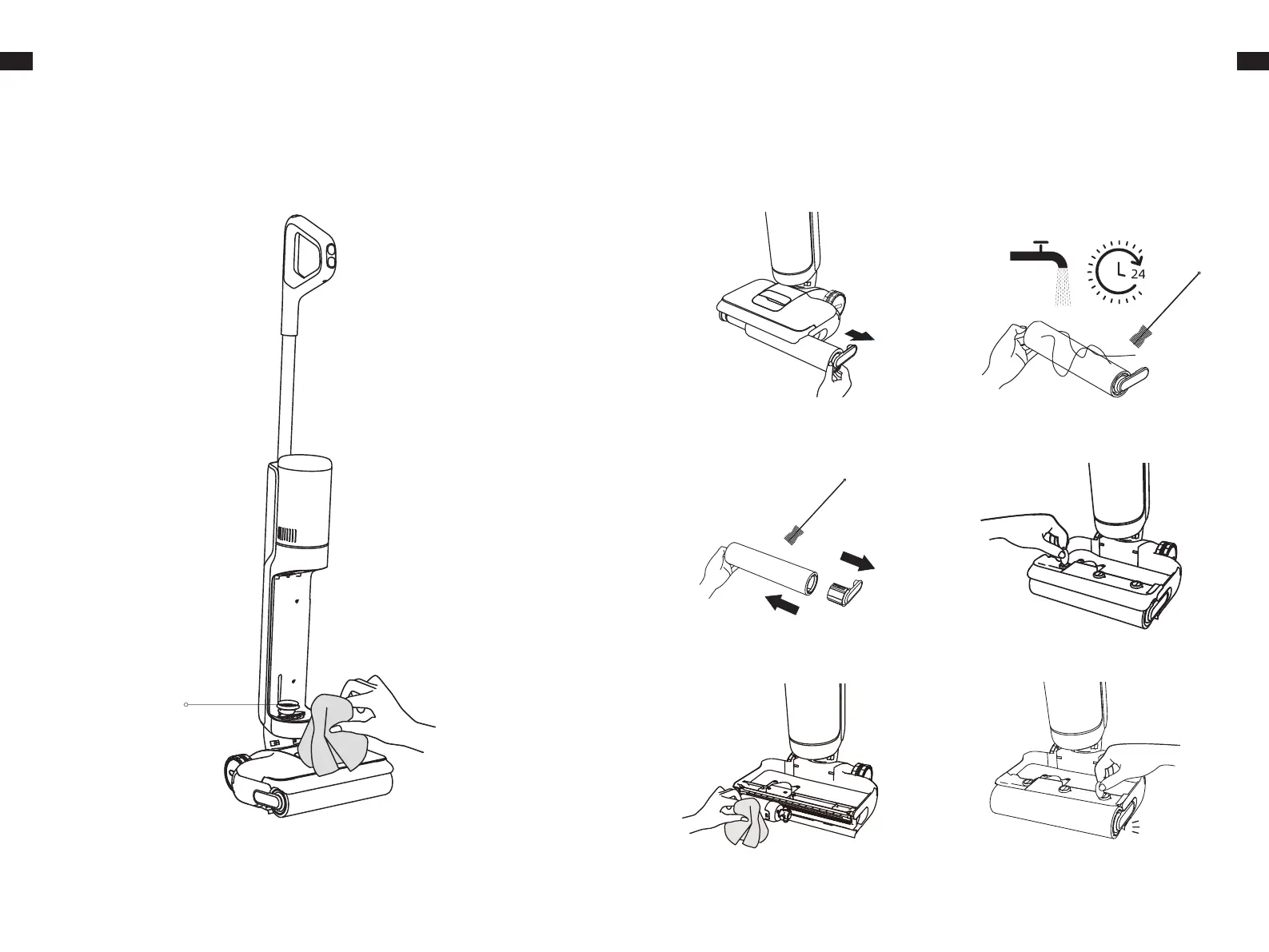Remove the used water tank and gently wipe the tube and the dirt sensor with a wet cloth.