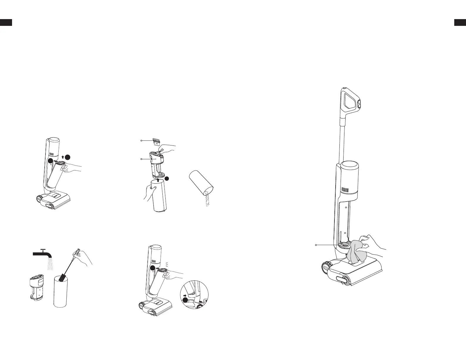 Retire el depósito de agua usada, frote con cuidado el tubo y el sensor de suciedad con