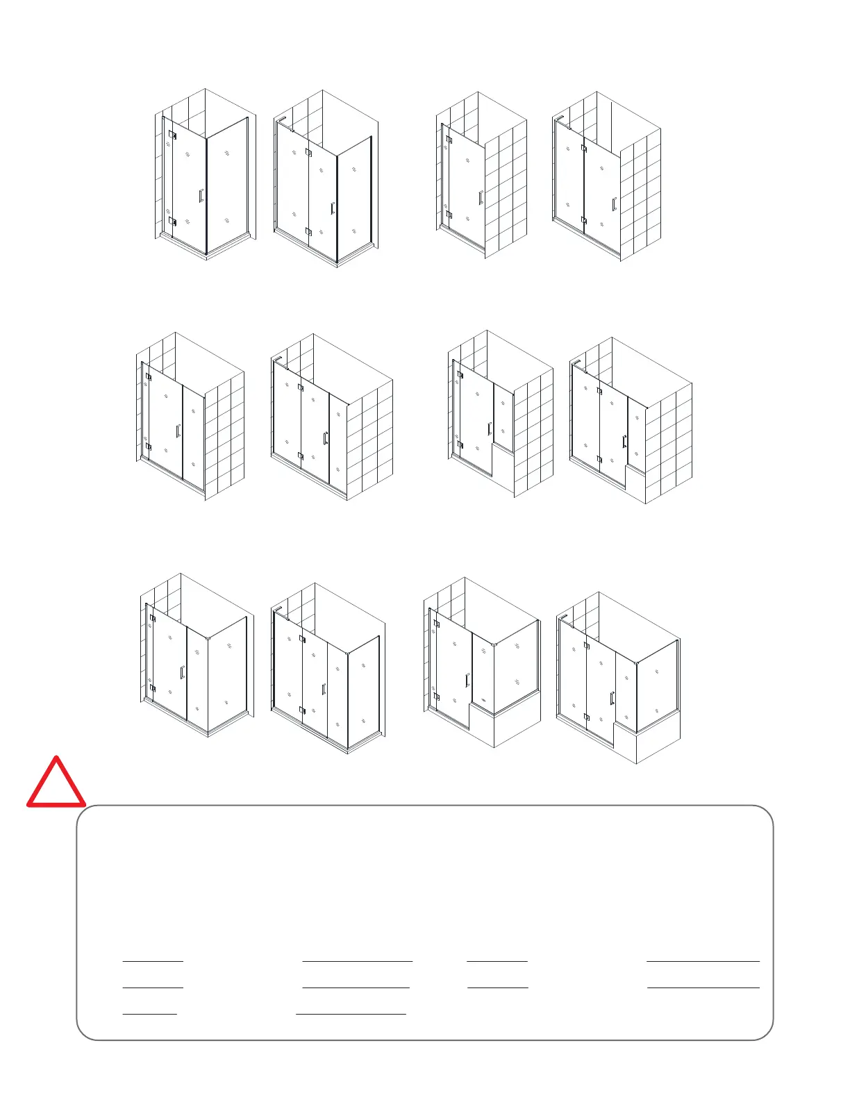When installing one of the configurations shown above with glass-to-glass hinges,
