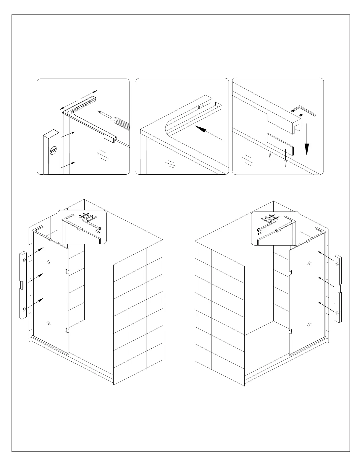18. Adjust the Stationary Glass to plumb and tighten the screws. Attach the Decorative Cover (#35.4).