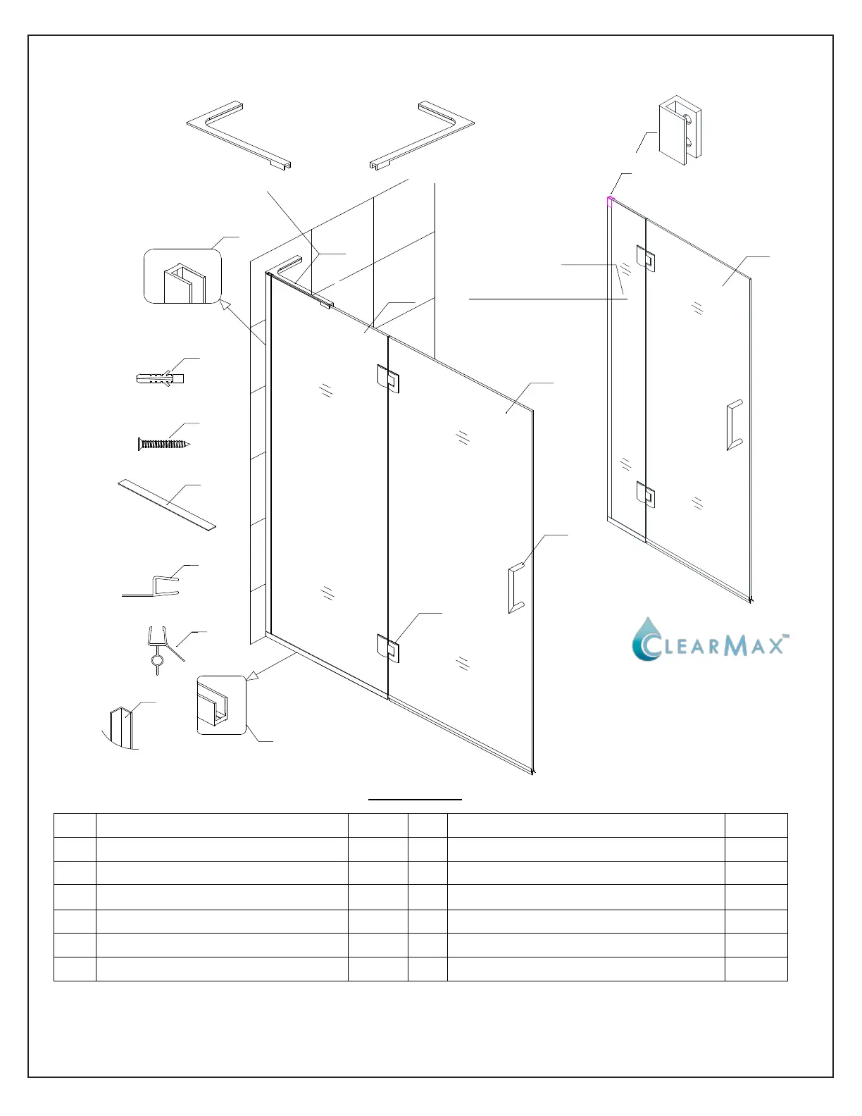 ** L-Bracket (for 24” hinge panel glass) is not included with 6” hinge panel glass