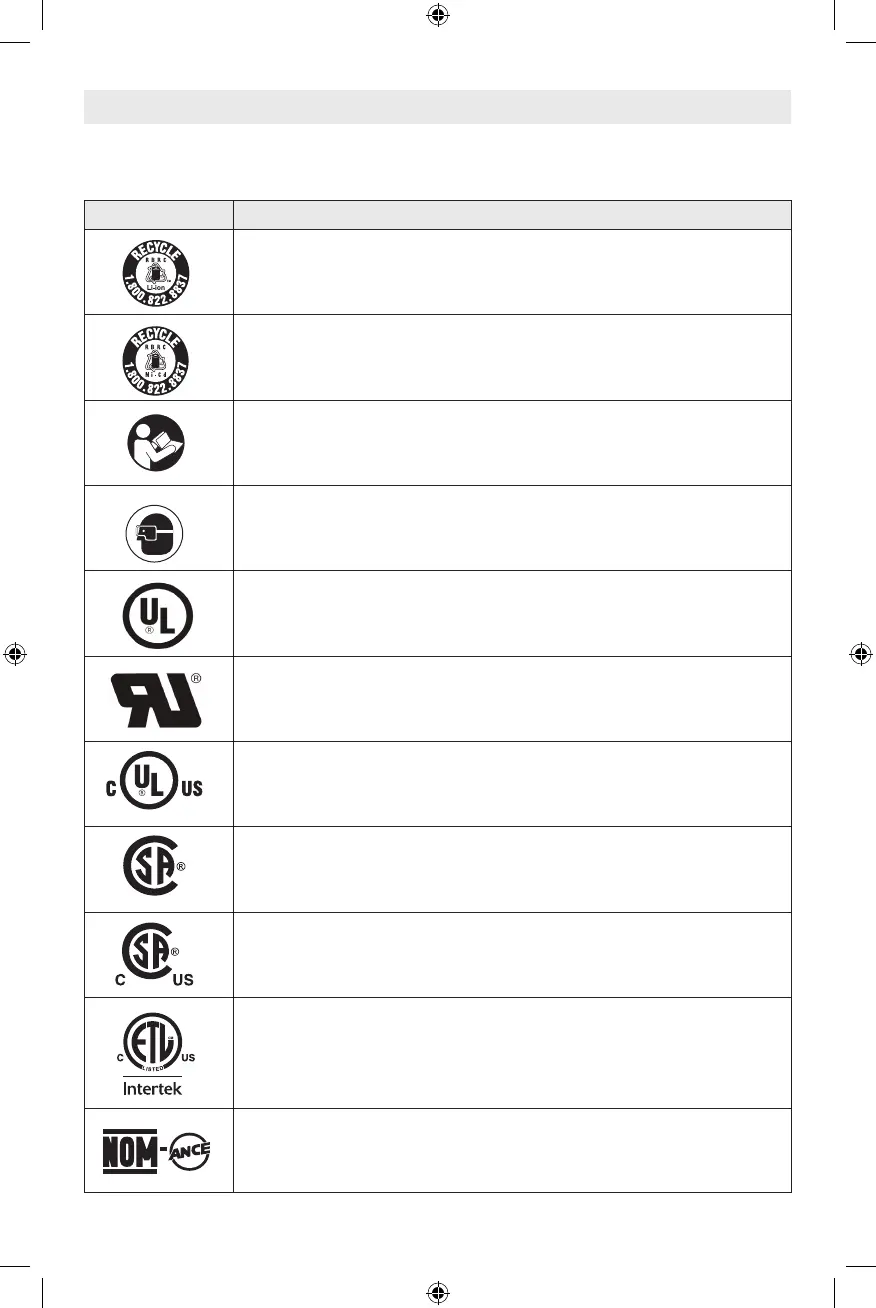 This symbol designates that this tool is listed by the Canadian Standards Association, to
