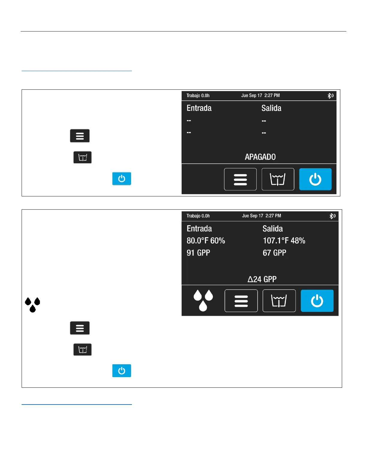 ambiente que se está deshumidificando, además de las horas de funcionamiento, mensajes de autodiagnóstico,