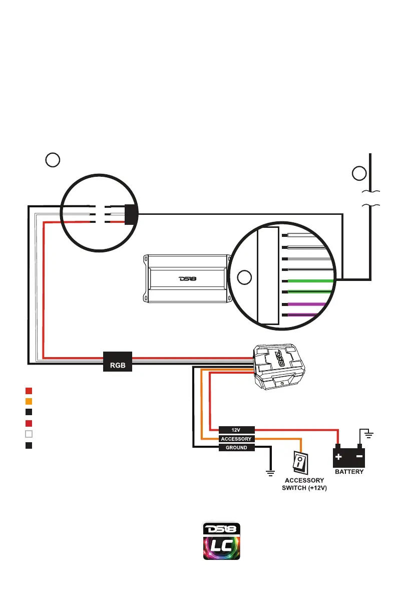 (Wh: CH1+, Wh/Bk: CH1-, Gy: CH2+, Gy/Bk: CH2-, Gr: