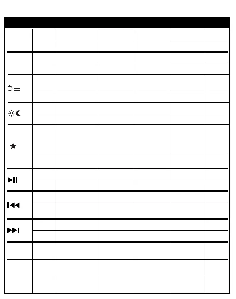 KEYS ACTION RADIO USB AUX BT MUSIC STANDBY