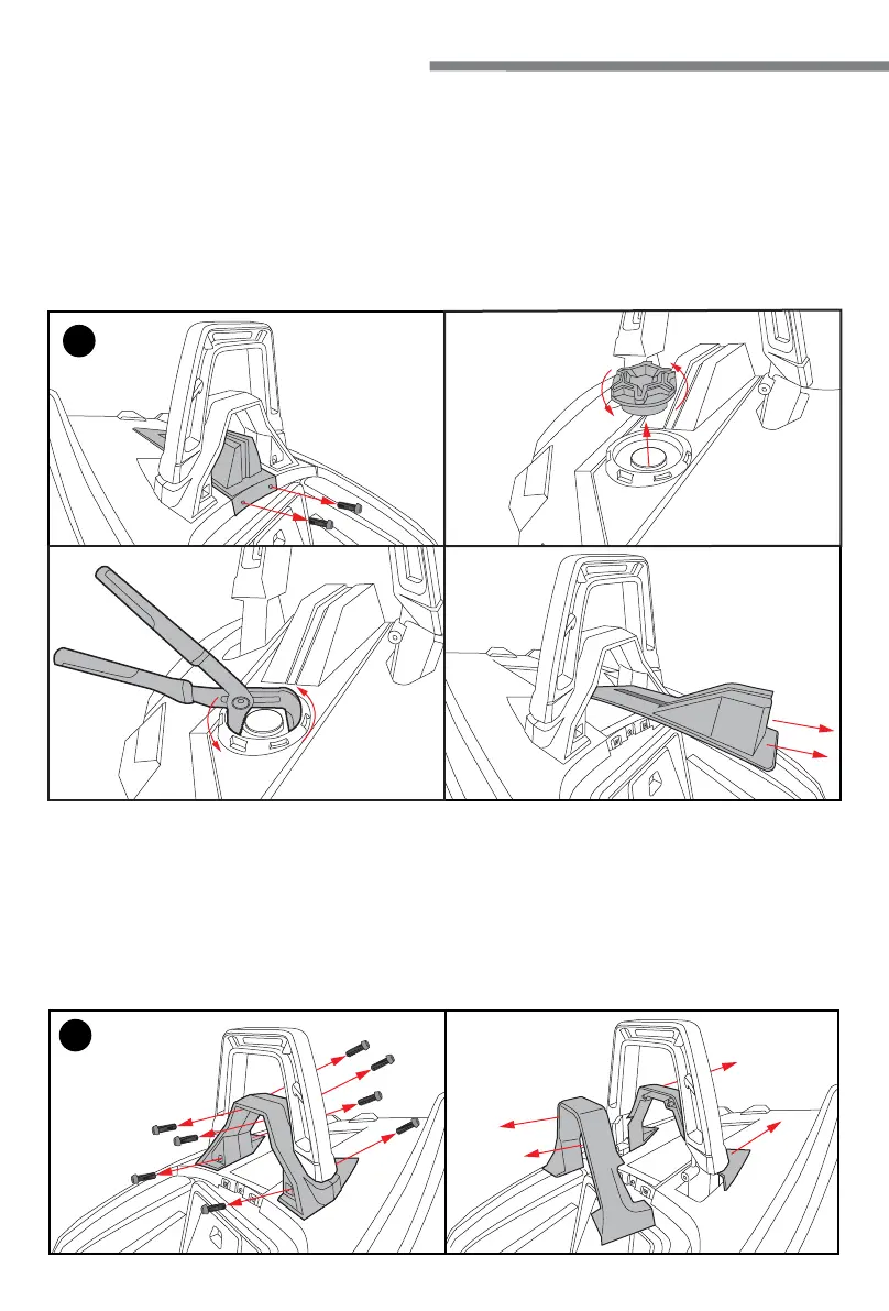 los (2) tornillos en la parte superior. Tire de cada pieza
