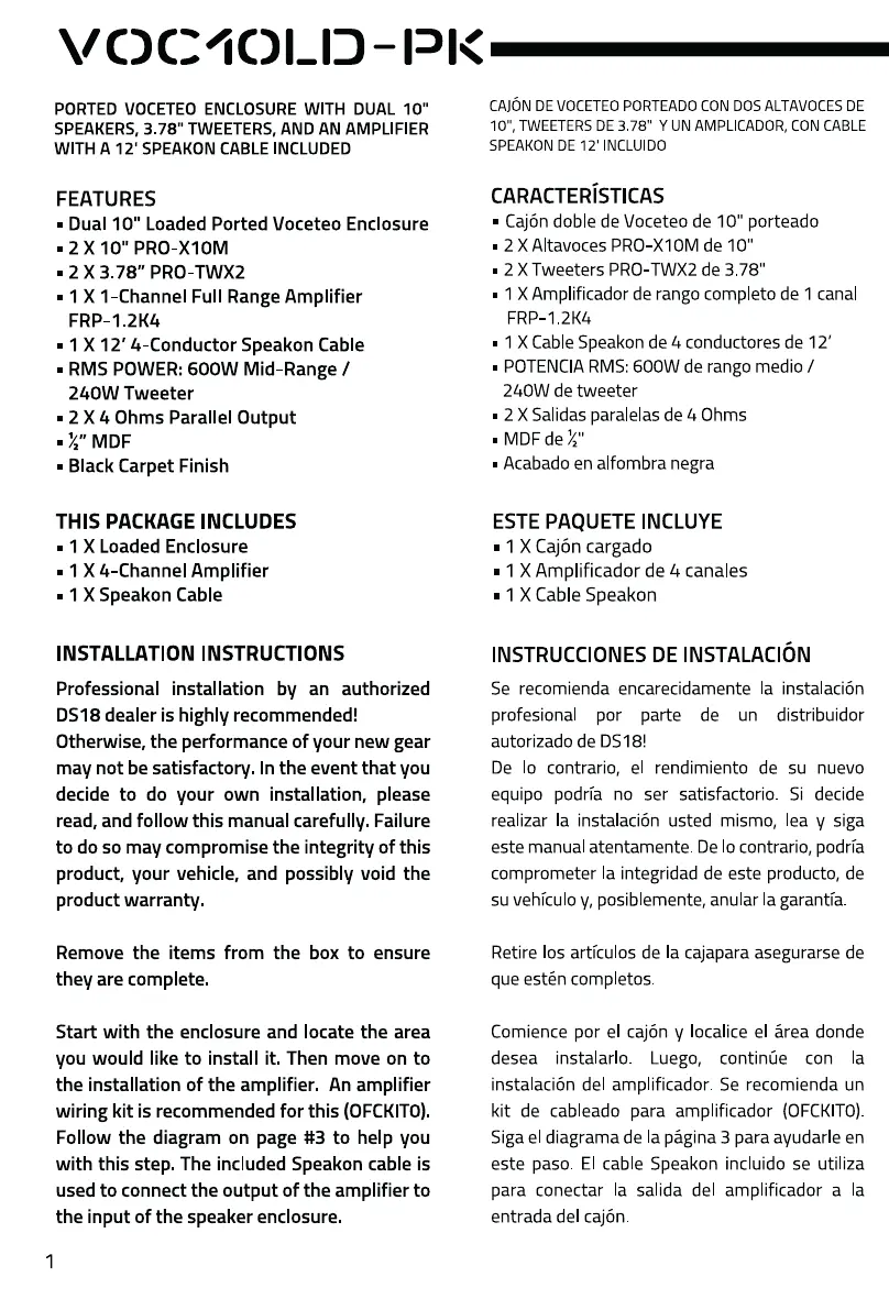Bekijk gratis de handleiding van DS18 VOC10LD-PK, stel vragen en lees de antwoorden op veelvoorkomende problemen, of gebruik onze assistent om sneller informatie in de handleiding te vinden of uitleg te krijgen over specifieke functies.