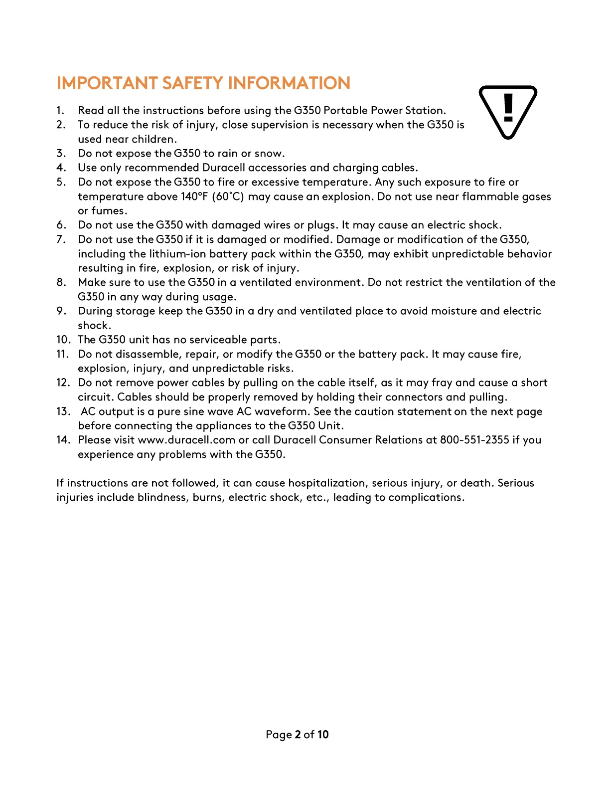 Bekijk gratis de handleiding van Duracell G350, stel vragen en lees de antwoorden op veelvoorkomende problemen, of gebruik onze assistent om sneller informatie in de handleiding te vinden of uitleg te krijgen over specifieke functies.