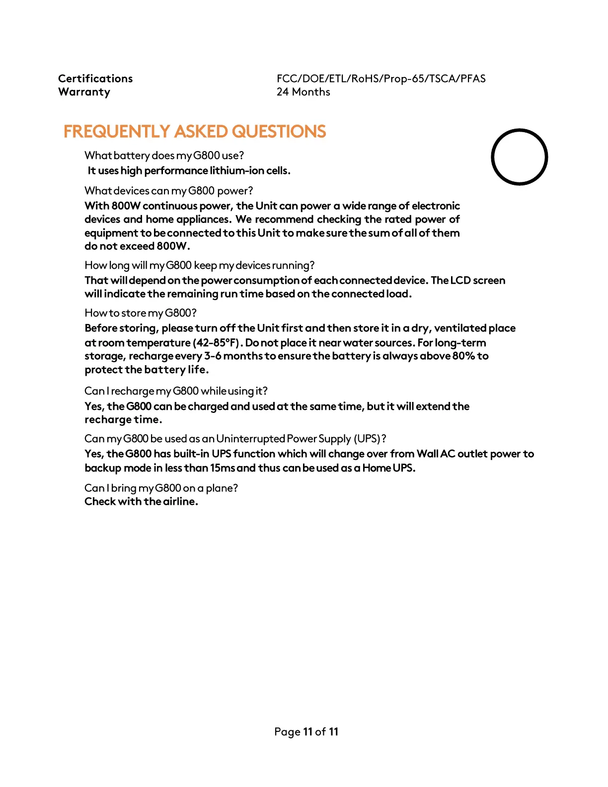 G800 power?