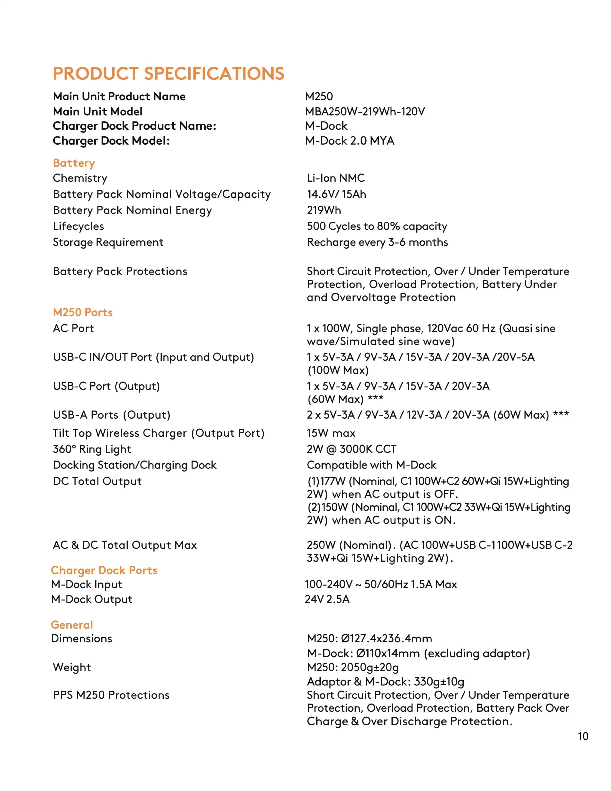| Model | M250 |