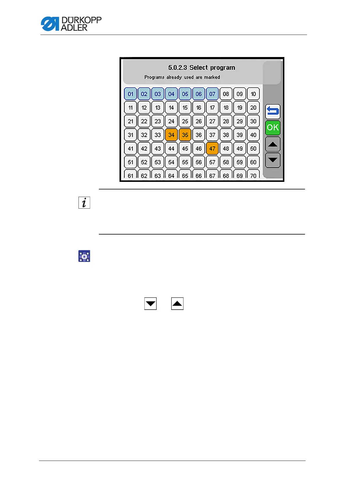 ļ To scroll up and down the list of pocket programs, press