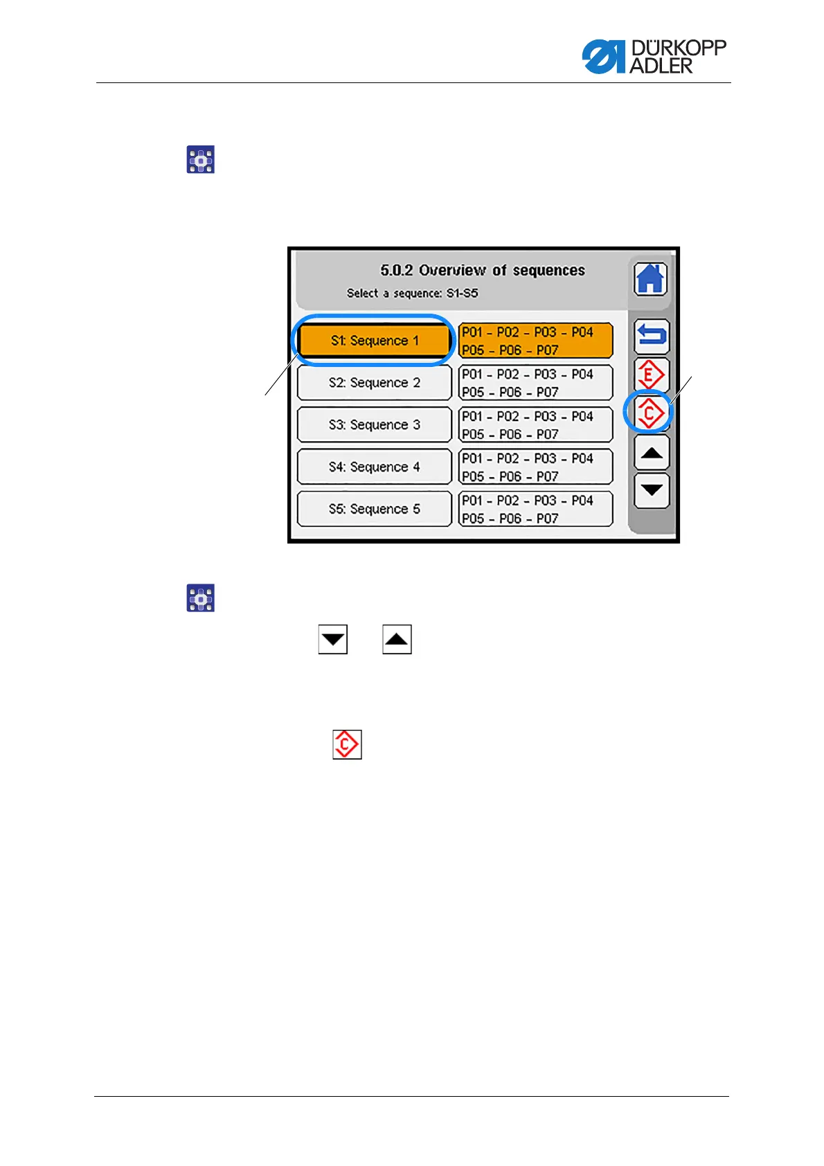 (1) - Selected seam sequence (2) - Copy seam sequence