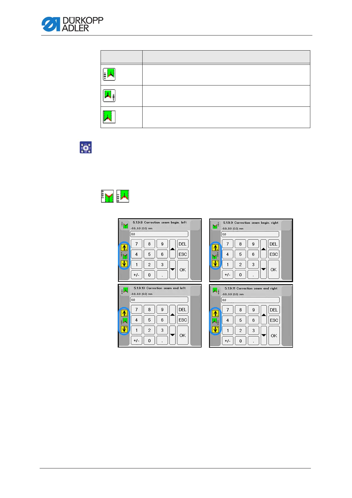 Fig. 118: Adjusting corner knife correction seam begin./seam end