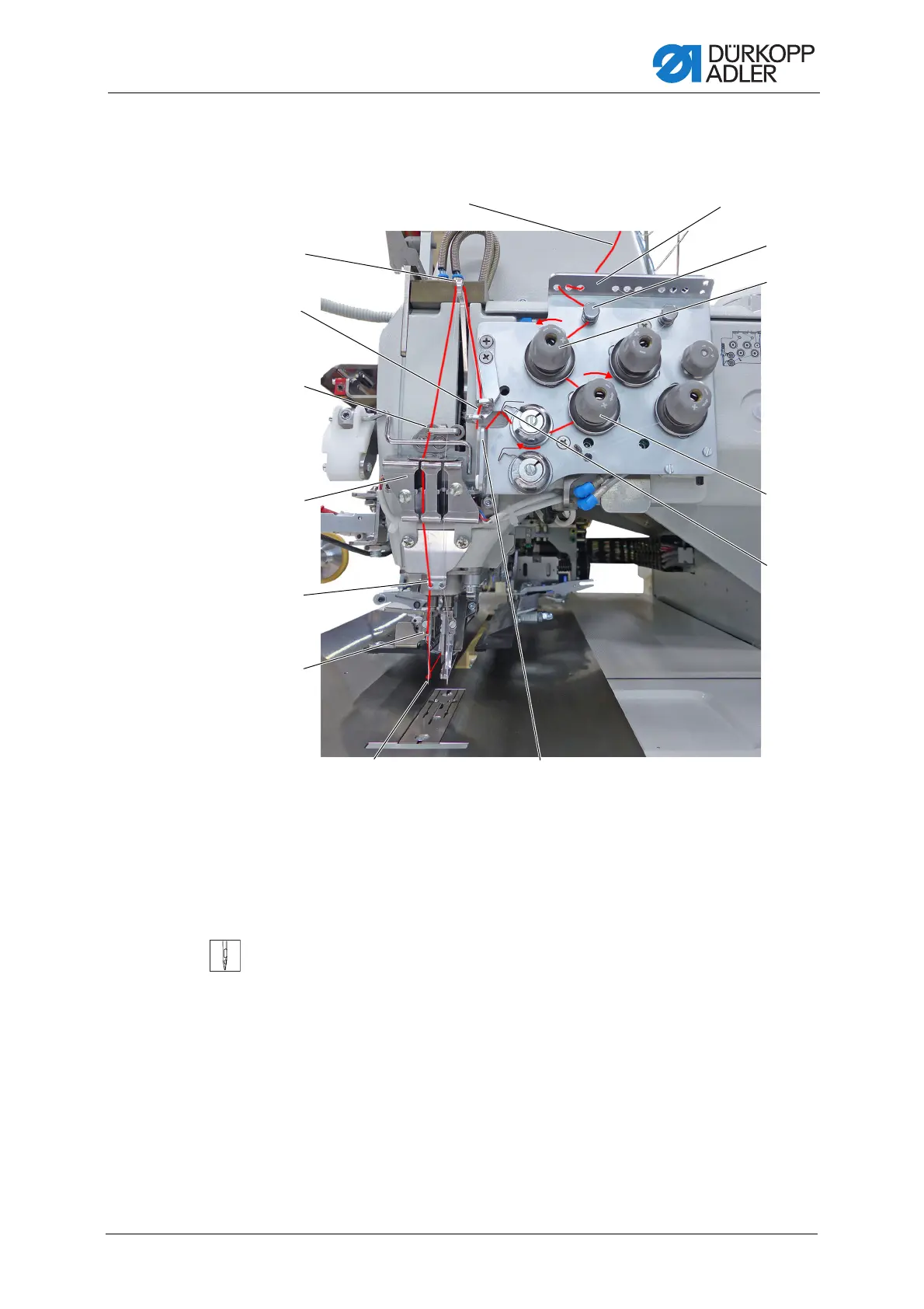 1. Feed the needle thread (1) in a wavelike manner through the 3 left