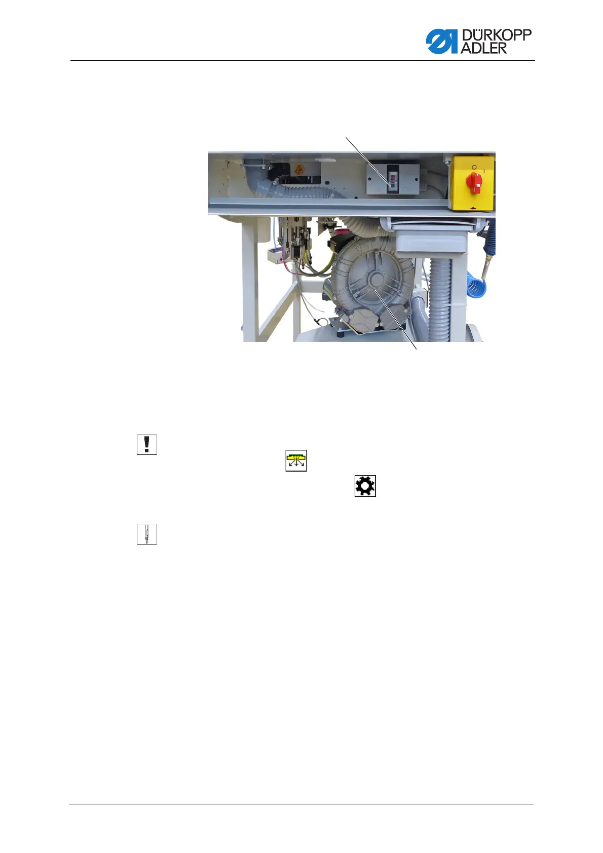 1. Turn on the switch (1) at the control box of the vacuum device (2).