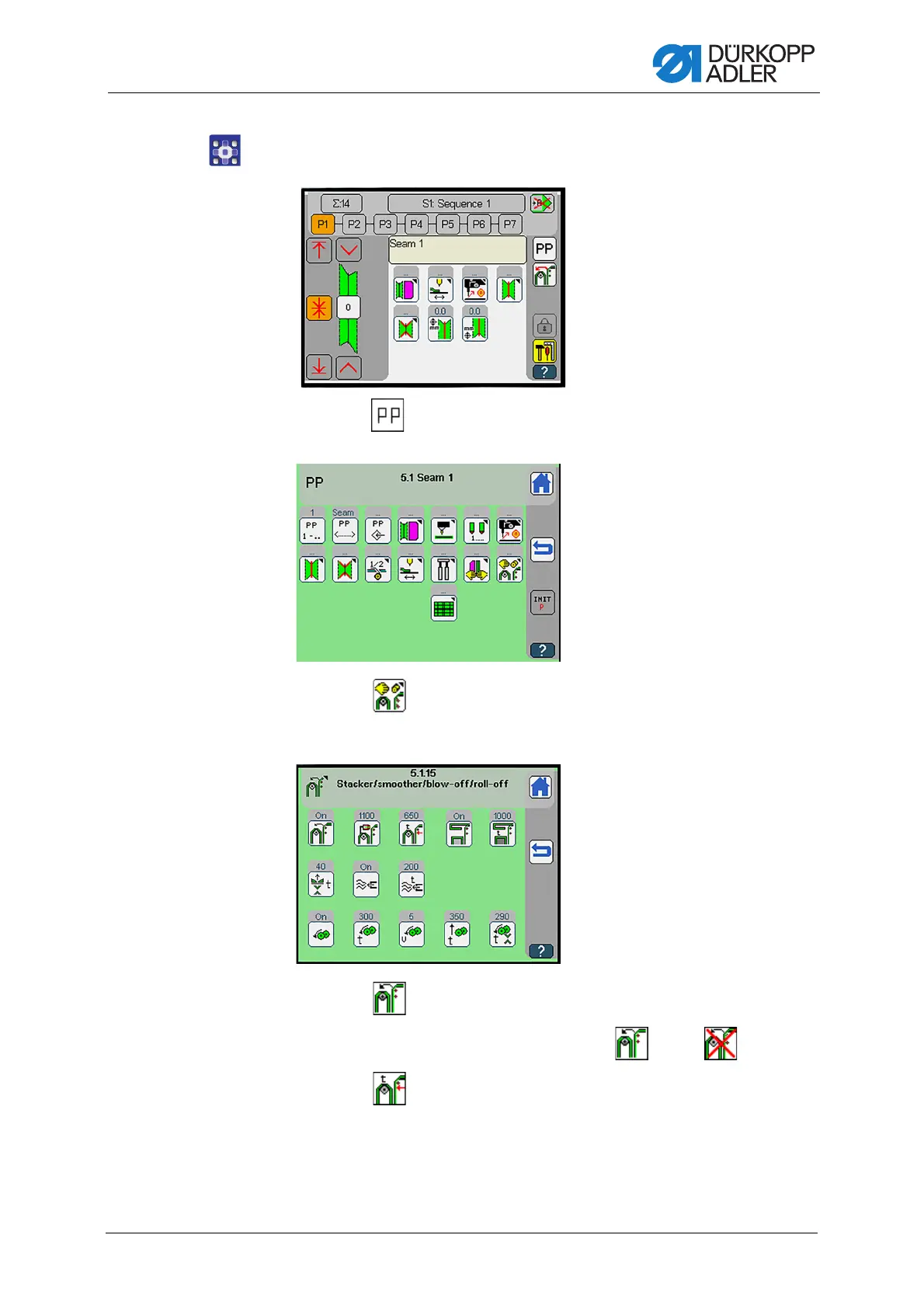 The display switches to Stacker/smoother/blow-off/