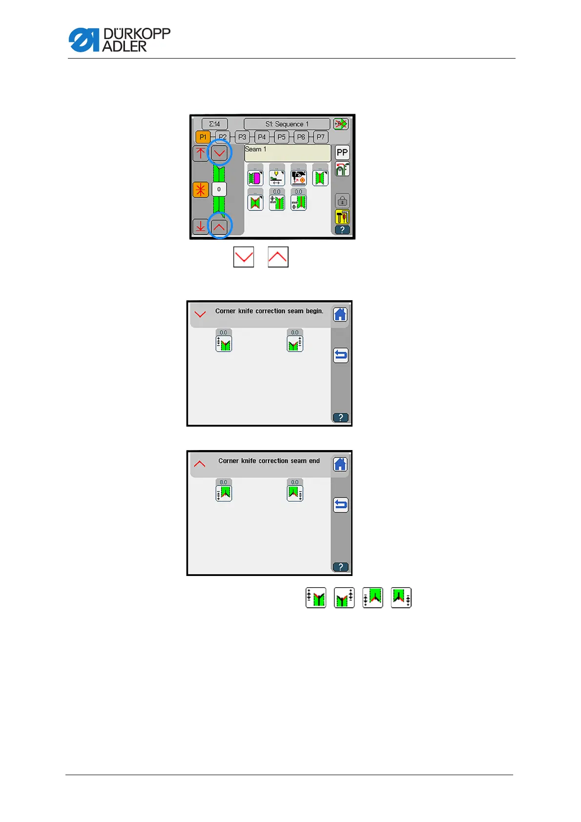 Corner knife correction seam begin. ( p. 184):