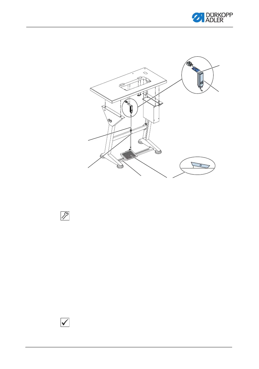 3. Screw the bracket (6) under the tabletop so that the pedal