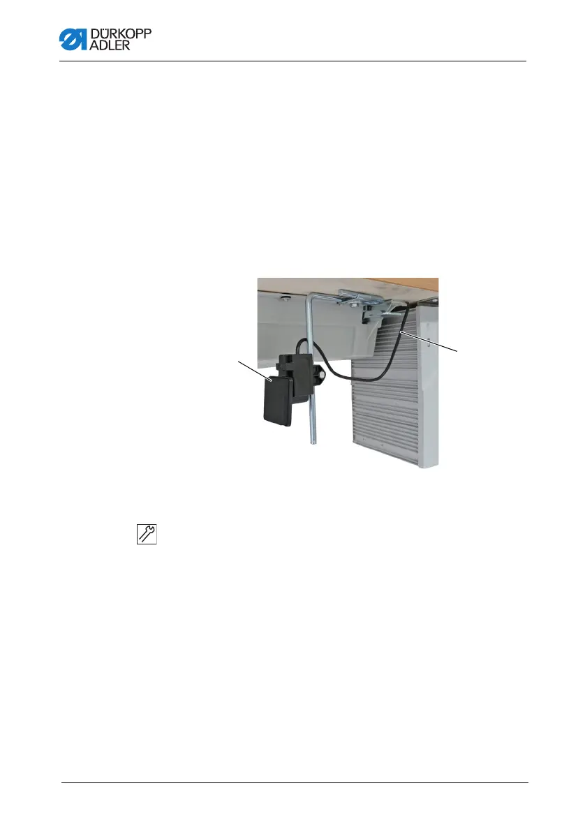 1. Screw the knee button (1) in front of the oil pan firmly in place