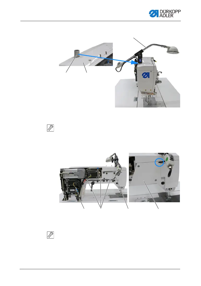 8. Lay the cable (8) inside the machine arm using the clips (7).