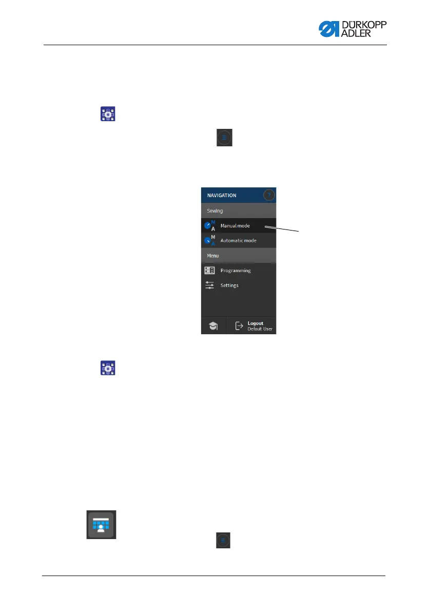 2. Press Manual mode (1).