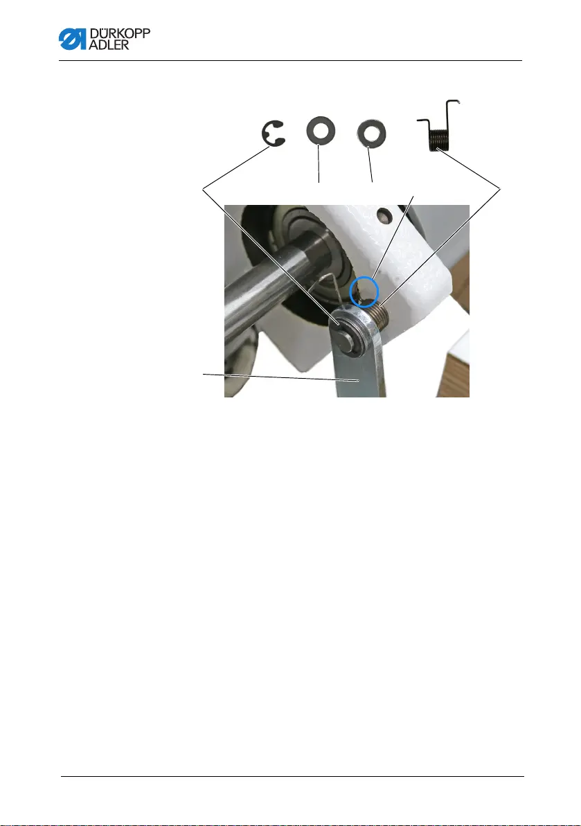 8. Tighten the spring (4) and clamp it behind the locking