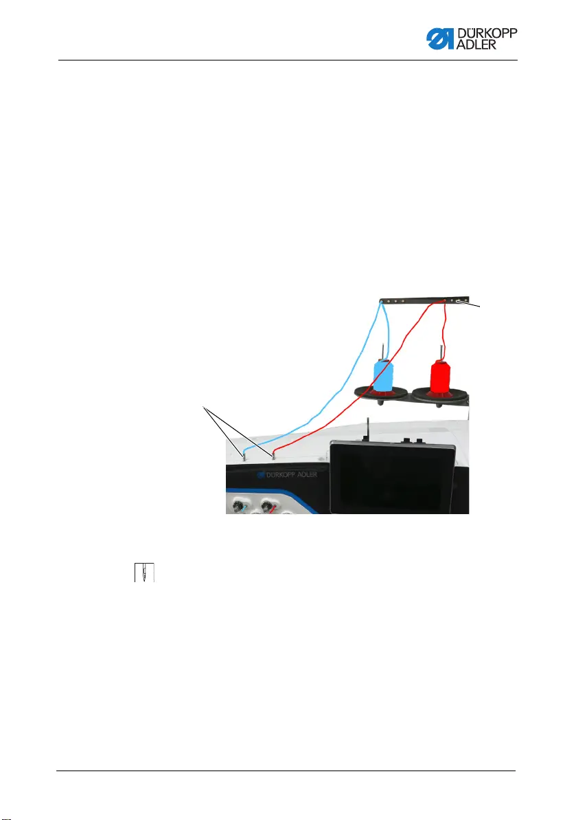 Fig. 11: Threading the needle thread (two-needle machine) (1)