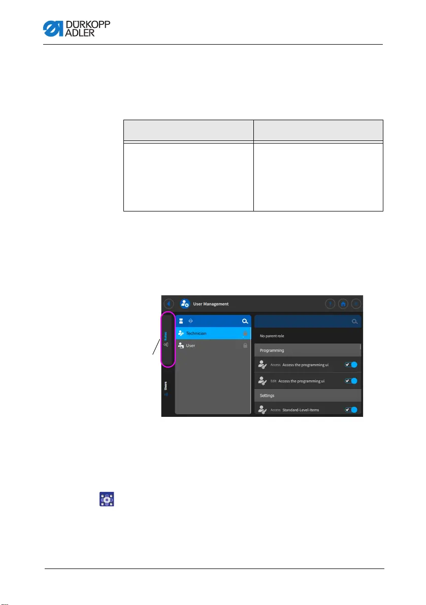 Press the tab (1) reserved for the Roles on the left-hand side.