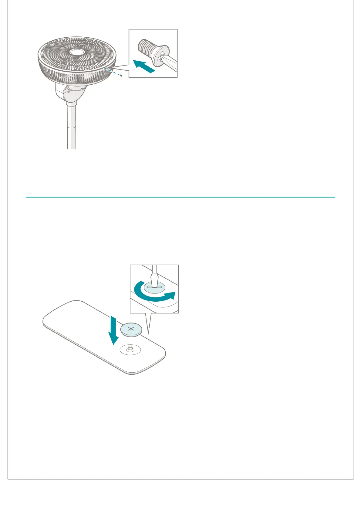 7. Rotate the front grill q counterclockwise until the triangle aligns with the screw hole on the rear grill e.