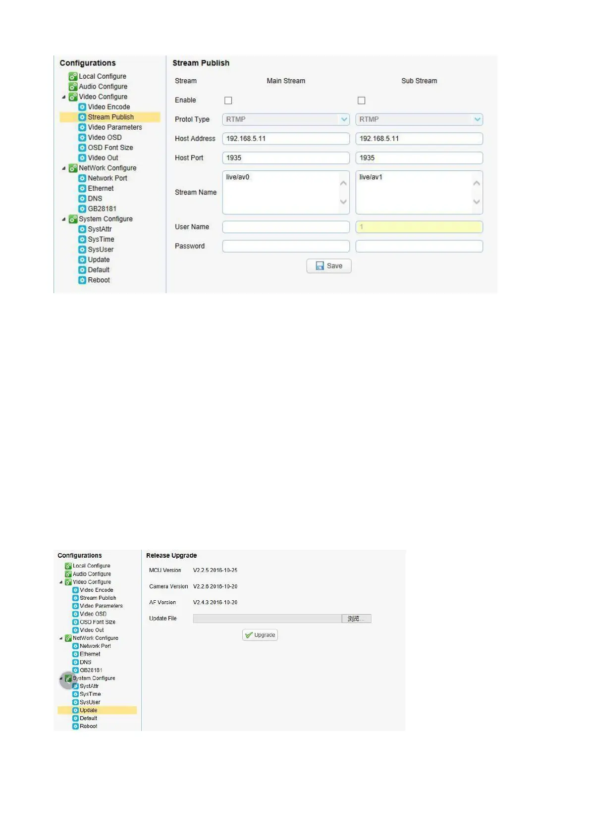 Click "browse" to select .mrg update file, then click upgrade button to finish software upgrade.