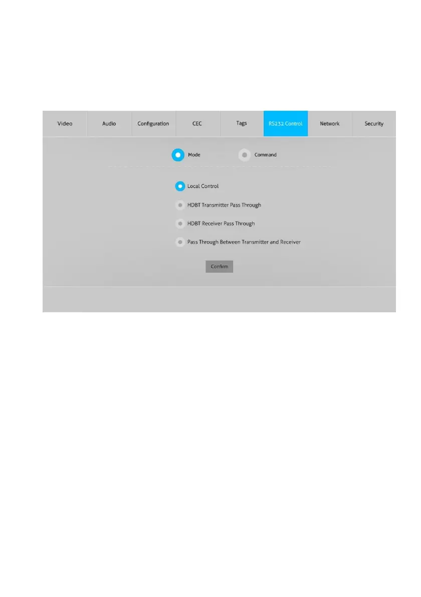 ⚫ HDBT Transmitter Pass Through: Establish RS232 pass-through communication