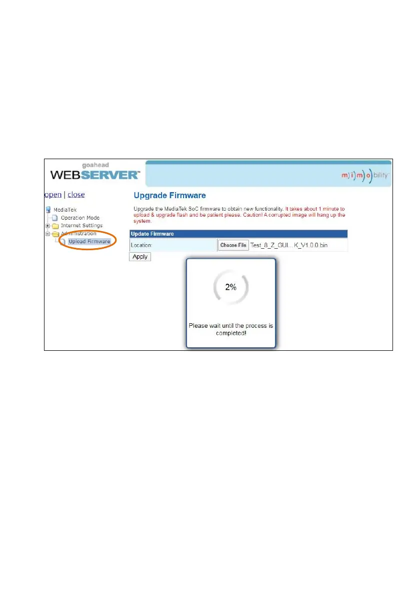 that, click Administration in the source menu, and then click Upload Firmware, select