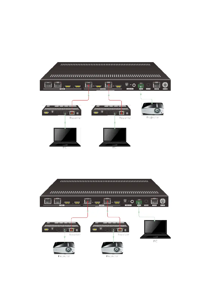 HDBaseT receiver, then connect a third-party device (e.g. projector) to the RS232