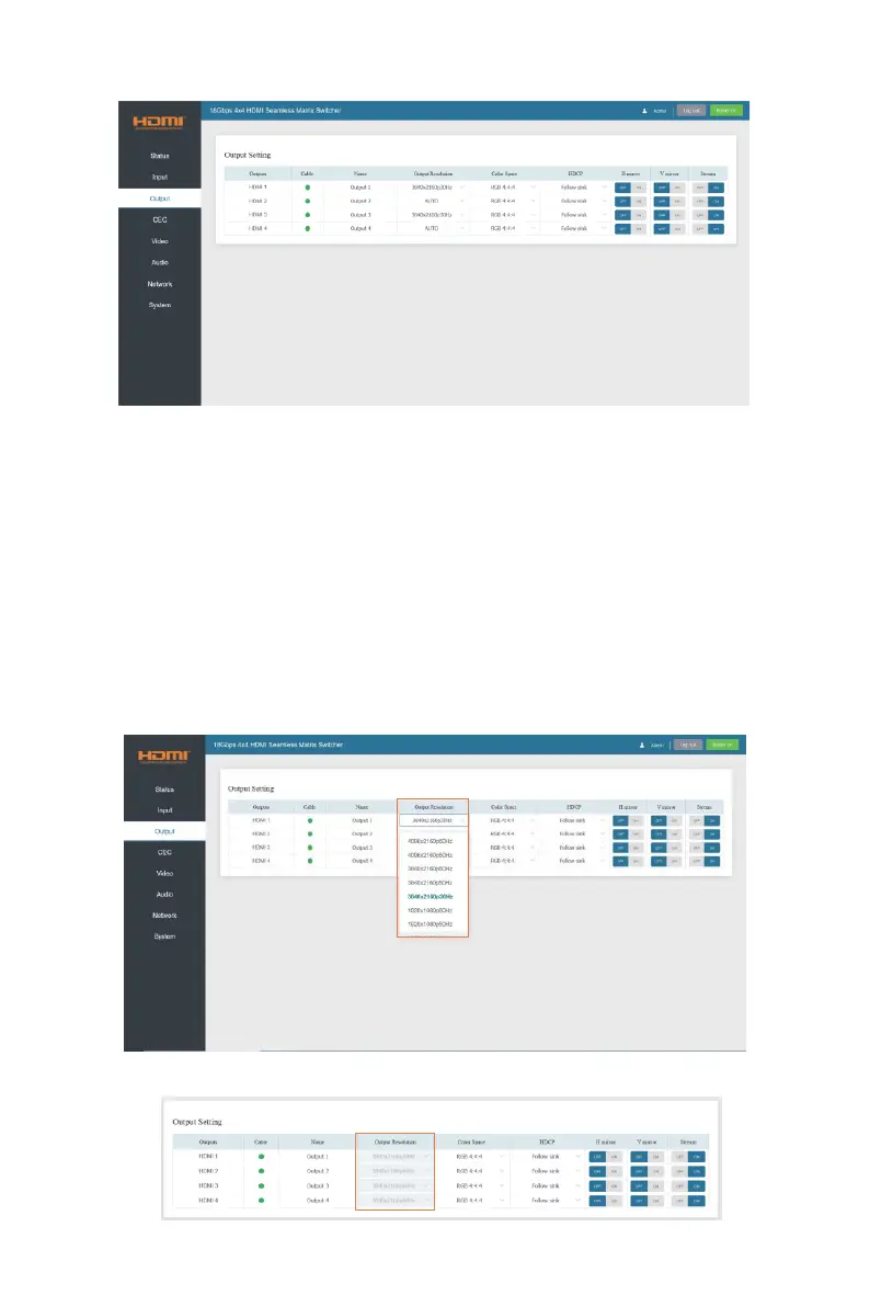 Note: Output resolution option is not available in video wall and multi-viewer mode.