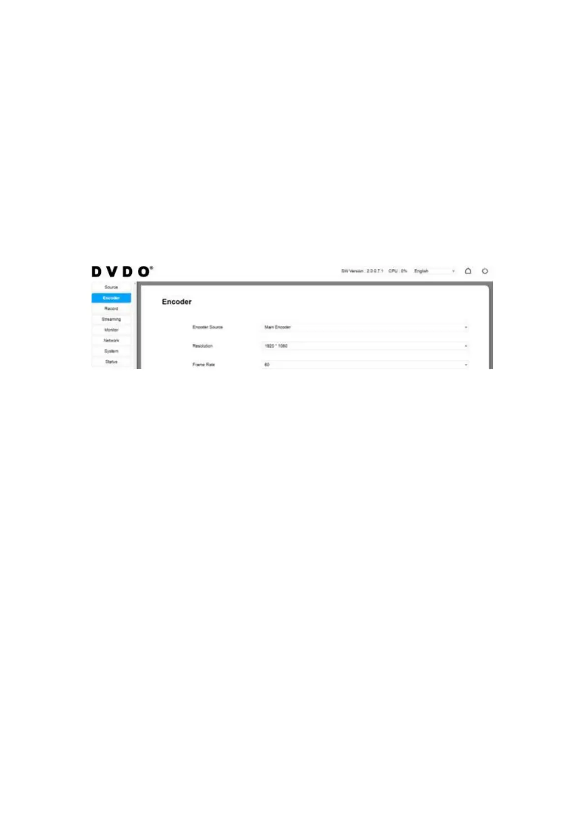 The video encoding resolution and bitrate can be adjusted in the Encoder section. DVDO-