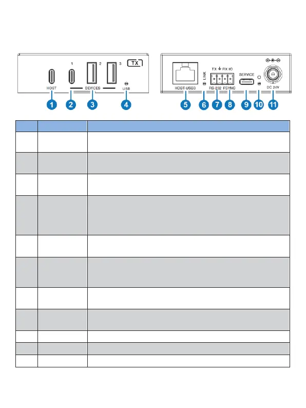 Uplink USB-C port, connected to PC or host.