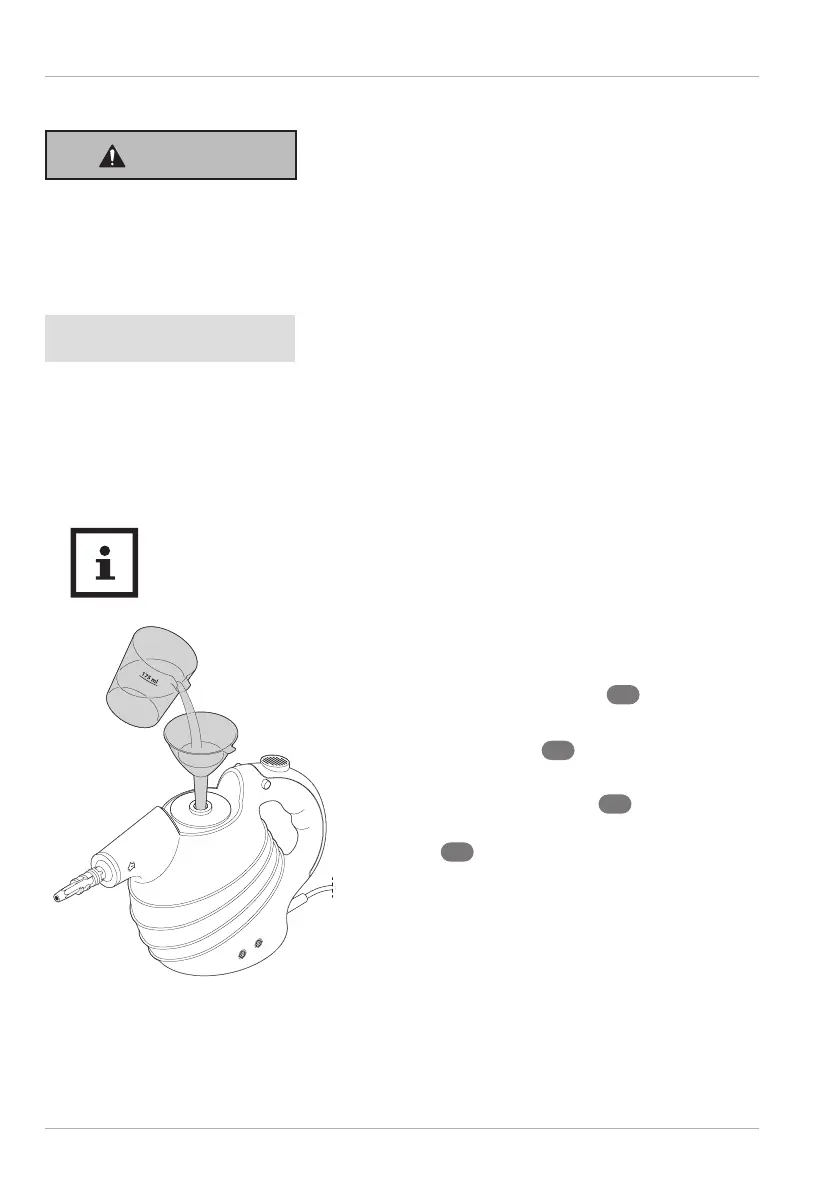 − Only operate the steam cleaner with water. Do not add alcohol,