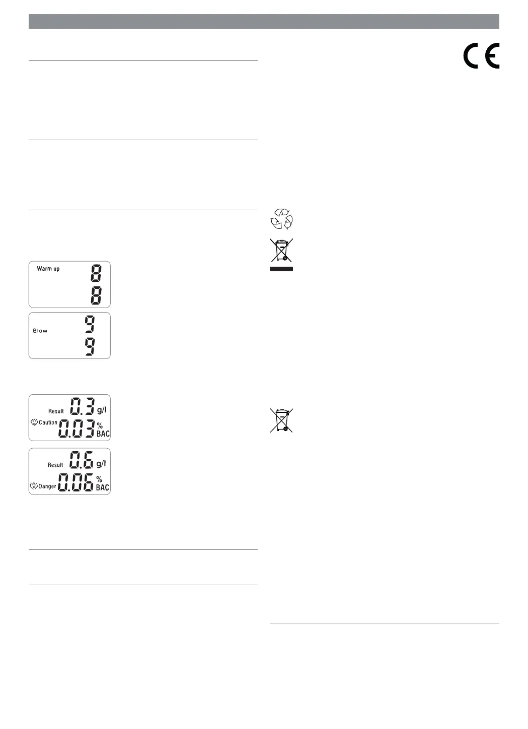 Messbereich: 0,00 – 0,19% BAC bzw. 0,0 – 1,9 g/l