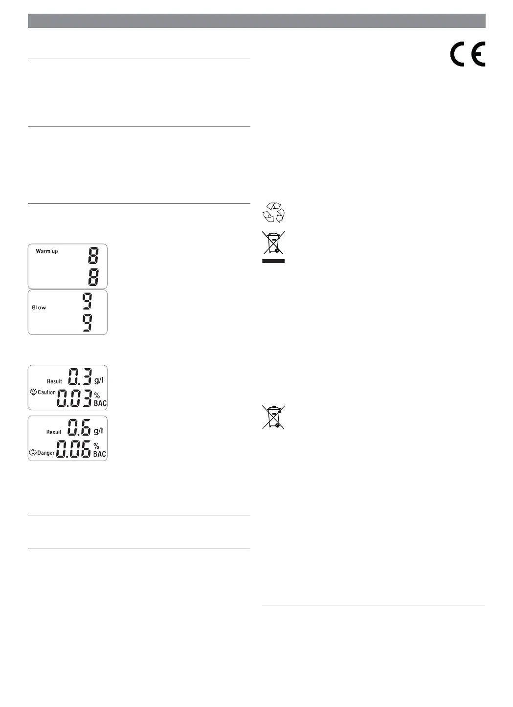 Measurement range: 0.00 - 0.19% BAC or 0.0-1.9 g/l