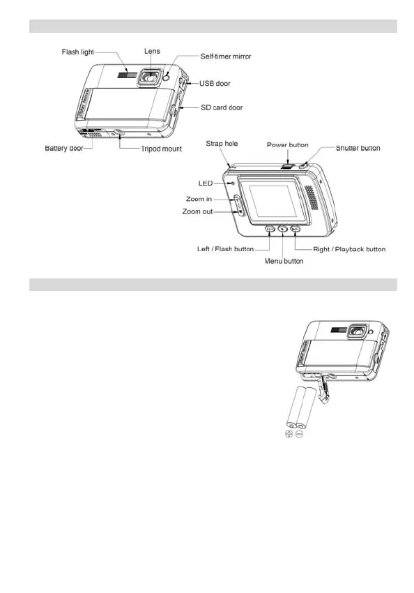 Your camera requires 2 AAA batteries. Insert the battery into the